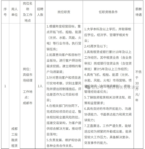 【招聘】成都工投融資租賃公司2025年招聘公告